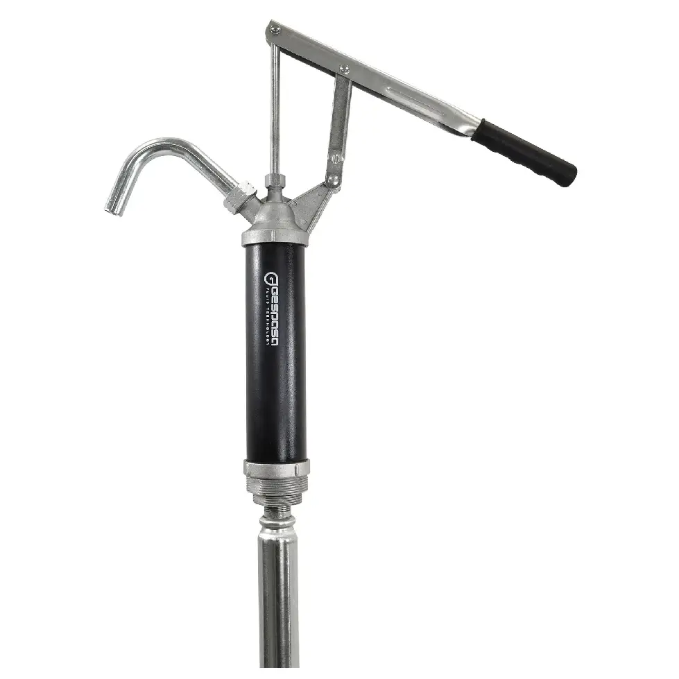 Bomba manual de palanca para transvasar aceites, gasóleo y queroseno (otros líquidos a consultar) desde bidones de 50 a 200 litros.